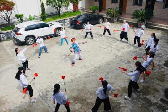 在時間不沖突的情況下,每天下午的三點至五點何松康都會到慶洞完小教同學們打霸王鞭,身體力行傳承人“非遺進校園”的職責。此外,百川中學、銀橋中學等周邊學校都留下了何松康教霸王鞭的身影,“非遺傳承要從娃娃抓起”,這句話,她一直在踐行。
