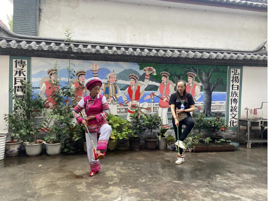何松康,白族霸王鞭州級代表性傳承人,也是白族霸王鞭傳習所的負責人,傳習所就建在她們家一樓的堂屋里。