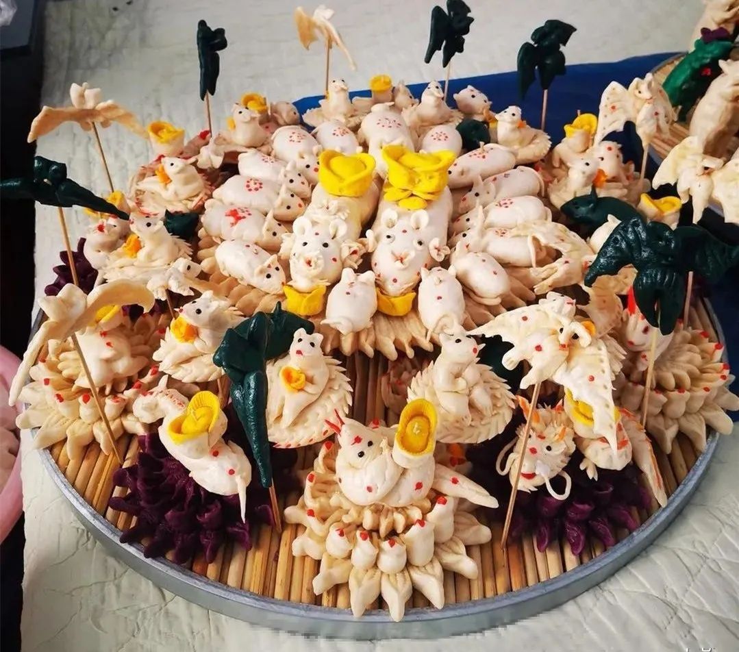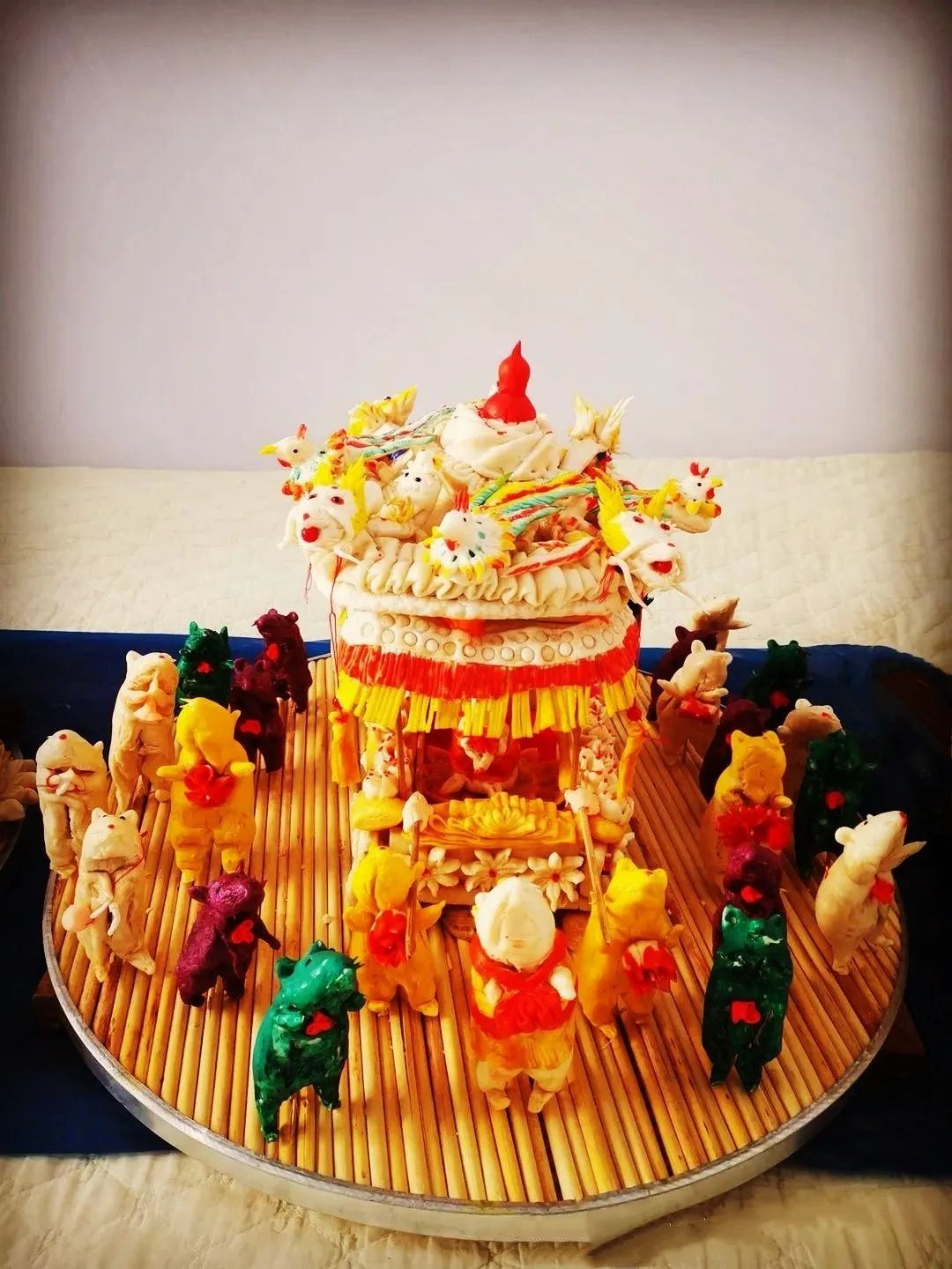 面塑,俗稱捏面人。在呼和浩特市托克托縣地區(qū)最早就用面粉為主料,用手和簡單的工具捏出各種造型的面制品,然后上籠蒸熟,常用來祭祀、供奉先人、送人和人生儀禮。托克托縣地區(qū)面塑制品主要有面人、棗山山、寒燕燕、面鎖等。