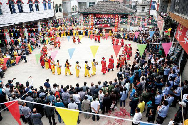 在酬謝自然之神后,由祭司念誦祭文,紀(jì)念民族英雄瓦氏夫人,頌揚(yáng)瓦氏夫人率領(lǐng)將士打擊倭寇的英雄事跡,傳授民族歷史知識,宣揚(yáng)保衛(wèi)家園、謀求平安的民族精神。