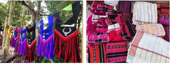 翁嘎科魏明介紹:“佤族男服飾以黑或者與紅、黑白、黑紅為搭配,女服飾裙子是純手工藝以黑白、黑紅為主基調(diào), 頭飾是用銀白色的頭飾進(jìn)行裝飾,裹著一層類似于項鏈一樣的飾品,最原始的頭飾還是用黑布裹起來的,演變到現(xiàn)在的話還需要做一些裝飾?!?/p>
