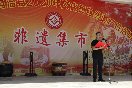 自治區(qū)非物質文化遺產保護中心朱鳳立書記擊鑼宣布“非遺集市”開市