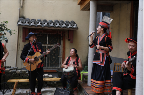 瑤族民間樂團——七彩鄉(xiāng)音全天候為游客演唱用瑤族傳統(tǒng)音樂元素創(chuàng)作的歌曲