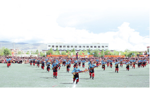 走進(jìn)拉孜鎮(zhèn)中心小學(xué),伴隨著課間操音樂,孩子們或旋轉(zhuǎn)或跳躍,朝氣蓬勃。作為西藏自治區(qū)首批“非遺特色縣”,拉孜縣將非物質(zhì)文化遺產(chǎn)拉孜堆諧改編成堆諧操,并在校園推廣。