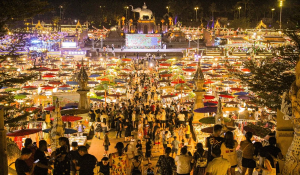 夜幕降臨,告莊西雙景星光夜市上千個(gè)特色攤位紛紛開(kāi)始營(yíng)業(yè),與壯美的瀾滄江江景交相輝映,成為西雙版納的新...