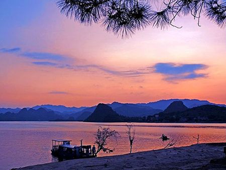 百花湖在朱昌鎮(zhèn)旁,湖中有100多個(gè)小島,以湖汊多、島嶼多見勝,遠(yuǎn)眺之下,很有幾分江南水鄉(xiāng)的韻味。游覽百花湖的最佳時(shí)間是春天,那時(shí)百花湖上就會(huì)百花盛開,姹紫嫣紅,百花湖也是因此而得名的。景區(qū)以湖光山色和巖溶地貌的自然景觀為主體,兼具秀、幽、奇、巧的特色。