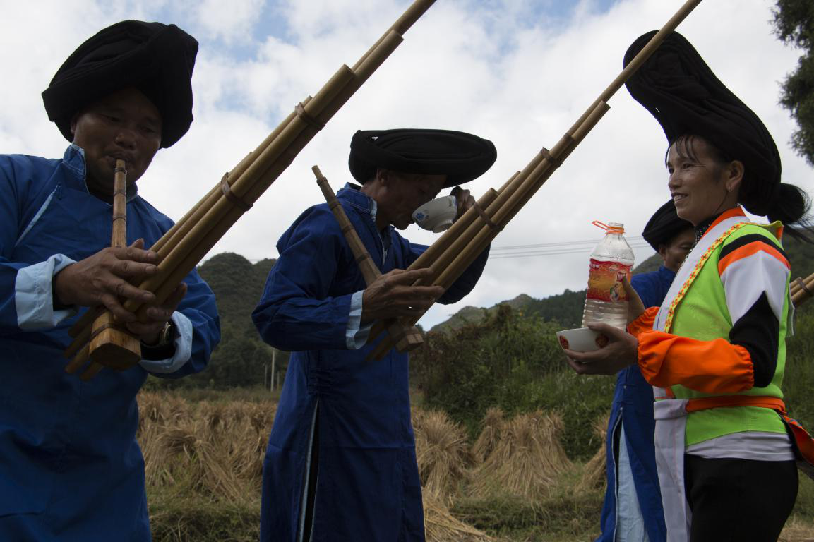 批林村蘆笙曲不限定地點,只要蘆笙響起,田間地頭,都可以起跳。蘆笙曲曲調(diào)深沉而又悠揚,配著藍天白云,稻草風香,整體舞蹈與天地相合,令人沉浸其中。