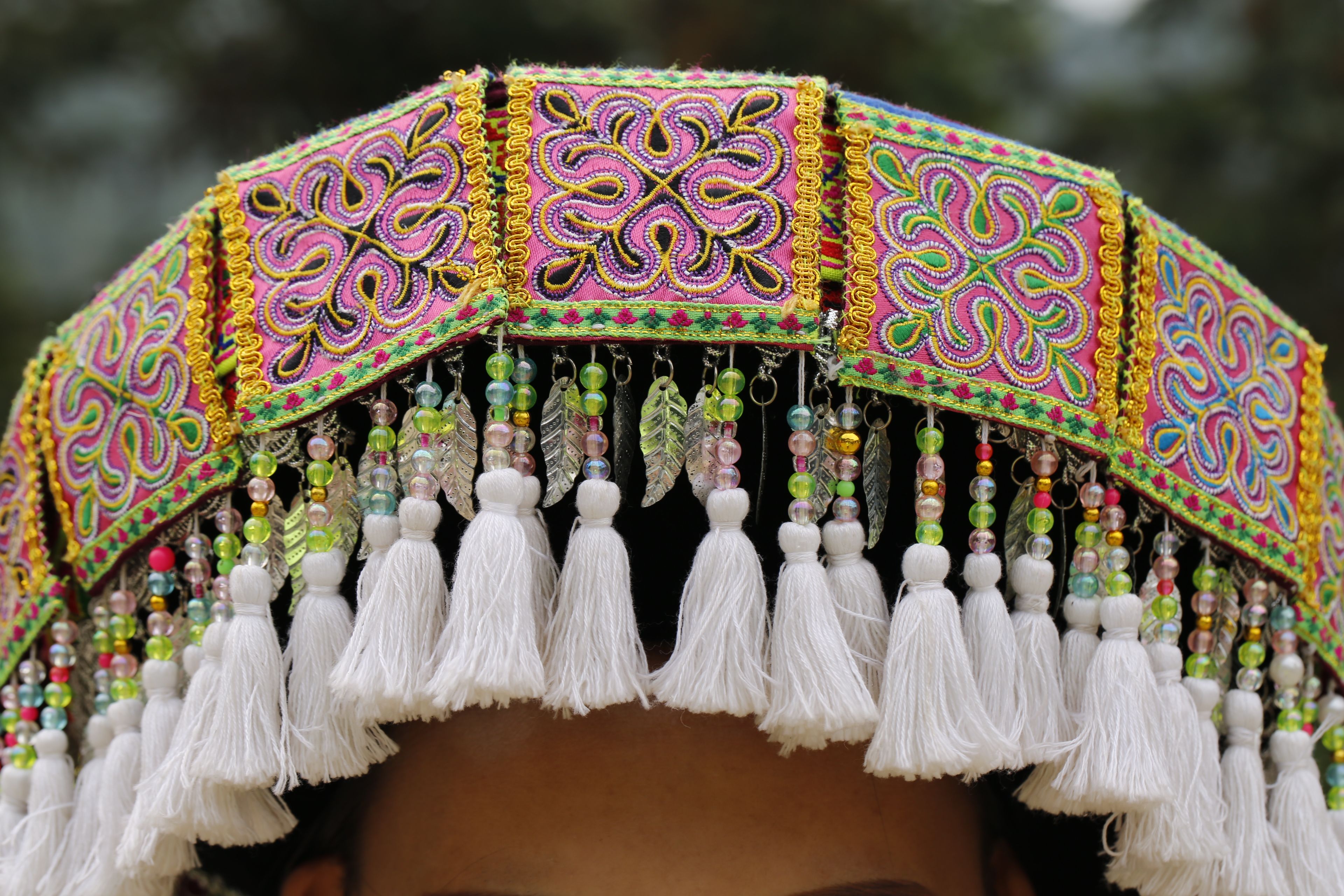 圖片說明:貴州貴陽苗族女子服飾花帽